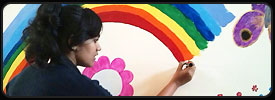 Nimi and her students painted the walls of the Kapoor ward for children. The Inmates/children too participated, thus making them smile and forget their problems for a short while. |